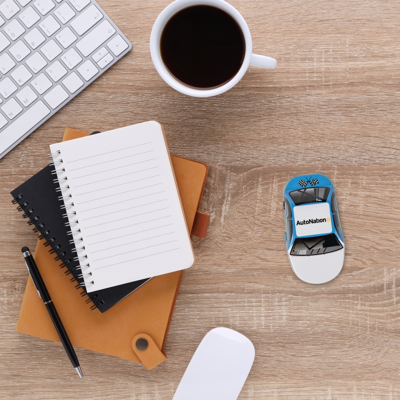 - Dynamic Design: Race car shape with eye-catching graphics—ideal for campaigns about speed or high performance.