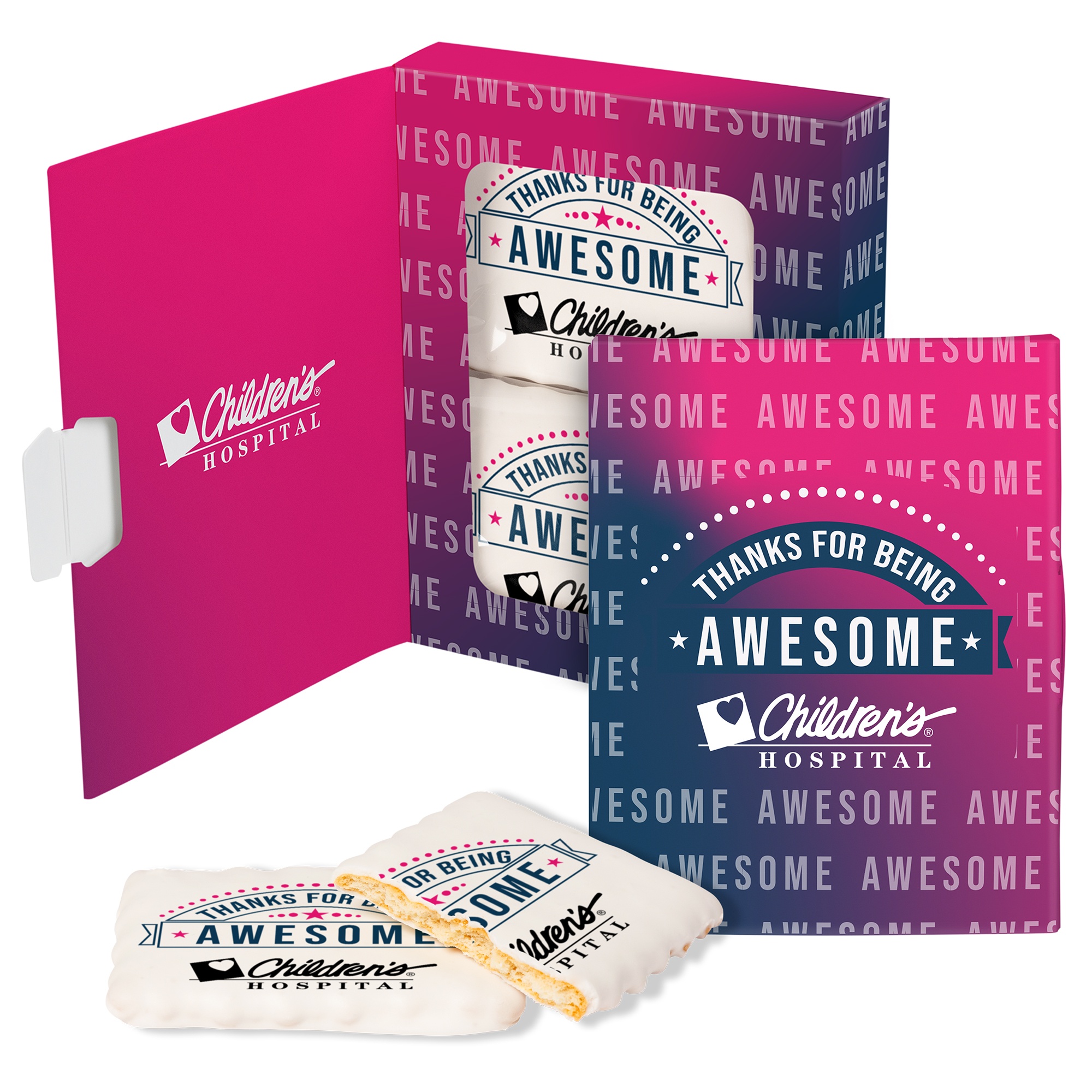 This book style window box with two custom Iced Cookies is a tasty way to send your messages of appreciation & are sure to leave a lasting impression!