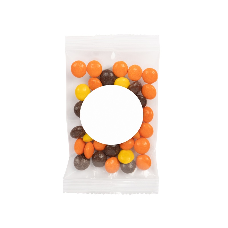 There's plenty to love about our 1 oz. goody bags of imprinted Reese's Pieces. The delicious taste of a peanut butter and chocolate mix is quick and easy to enjoy! Each piece of candy will have your logo on it and will come in a bag that's either labeled (3” x 4”) or has a direct imprint (4.929” x 2.5”) of your branding. That way, nobody will be able to miss you! Place your order now and familiarize new clients with your business!