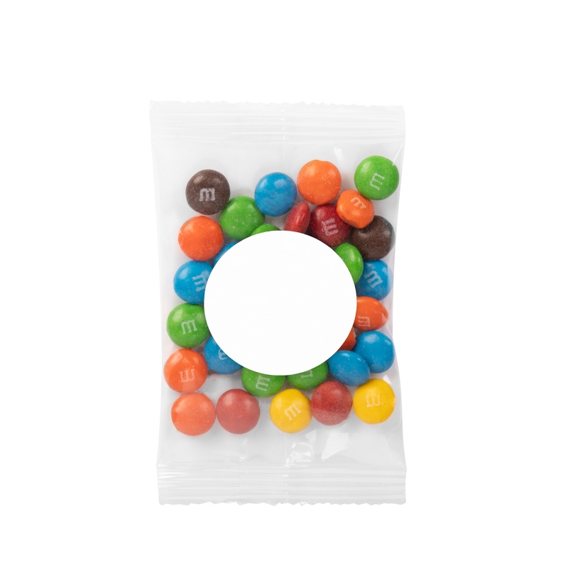 1oz. Candy Coated Chocolate Goody Bag. Perfect for parades, trade shows or any event where you want to give an inexpensive, colorful and delicious treat. Direct imprint bag dimensions: 4.929" x 2.5". Labeled bag dimensions: 3" x 4". Non melt product.
