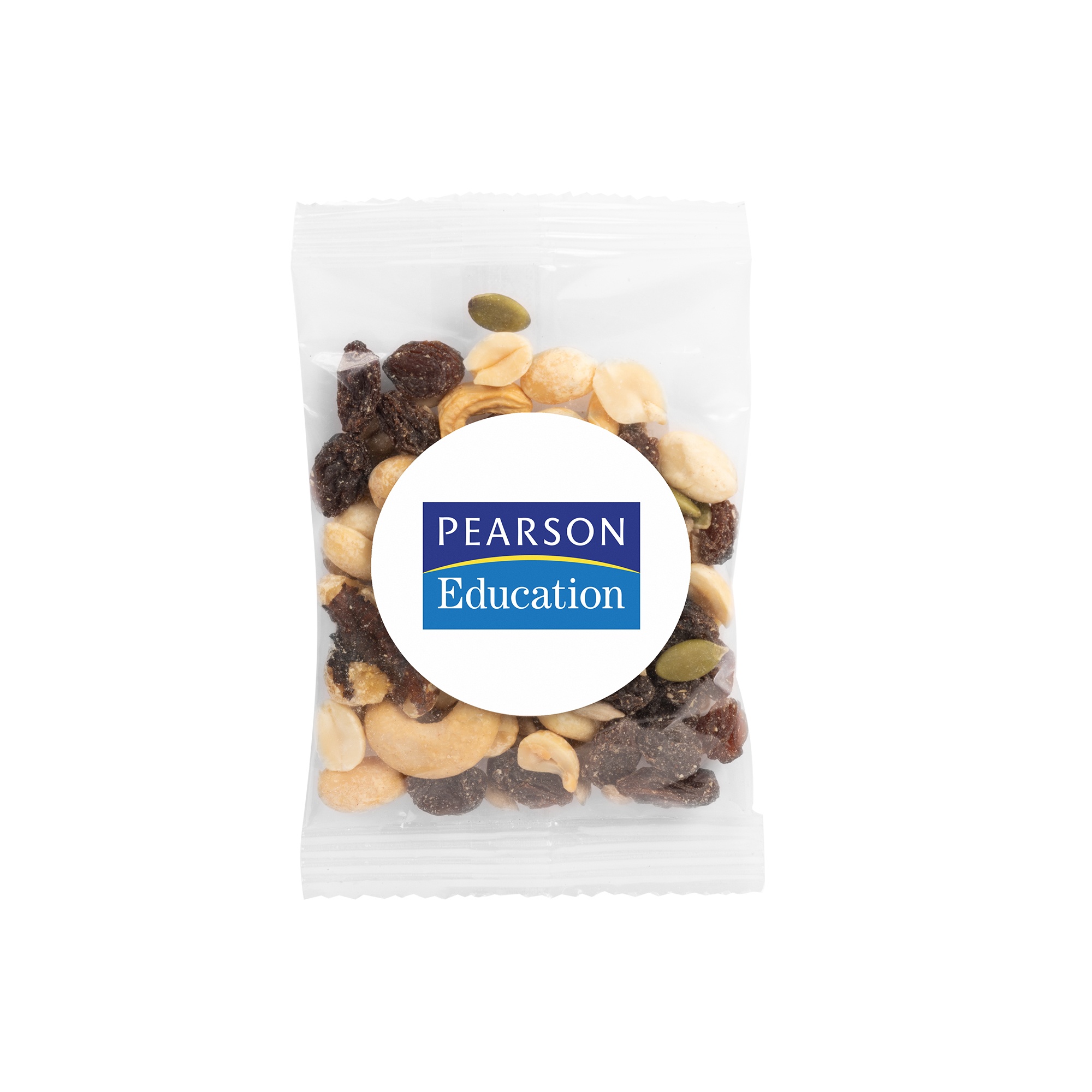 1oz. Raisin Nut Mix- Goody Bag. Perfect for parades, trade shows or any event where you want to give an inexpensive, colorful and delicious treat. Direct imprint bag dimensions: 4.929" x 2.5". Labeled bag dimensions: 3" x 4". Non melt product.