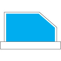 A glass business card holder with a rectangular back and base, and a rectangle with a flat corner on the front.
